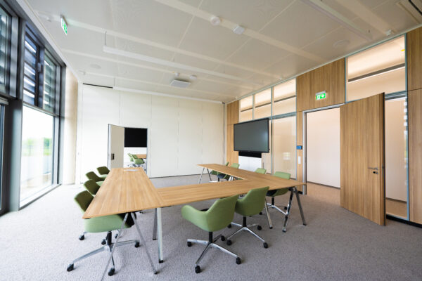 Offene Bürostrukturen mit Treffpunkten zum Austausch und eingestreuten Besprechungselementen bieten ein modernes Arbeitsumfeld für alle zentralen Funktionen des Unternehmens bis hin zur Geschäftsführung.